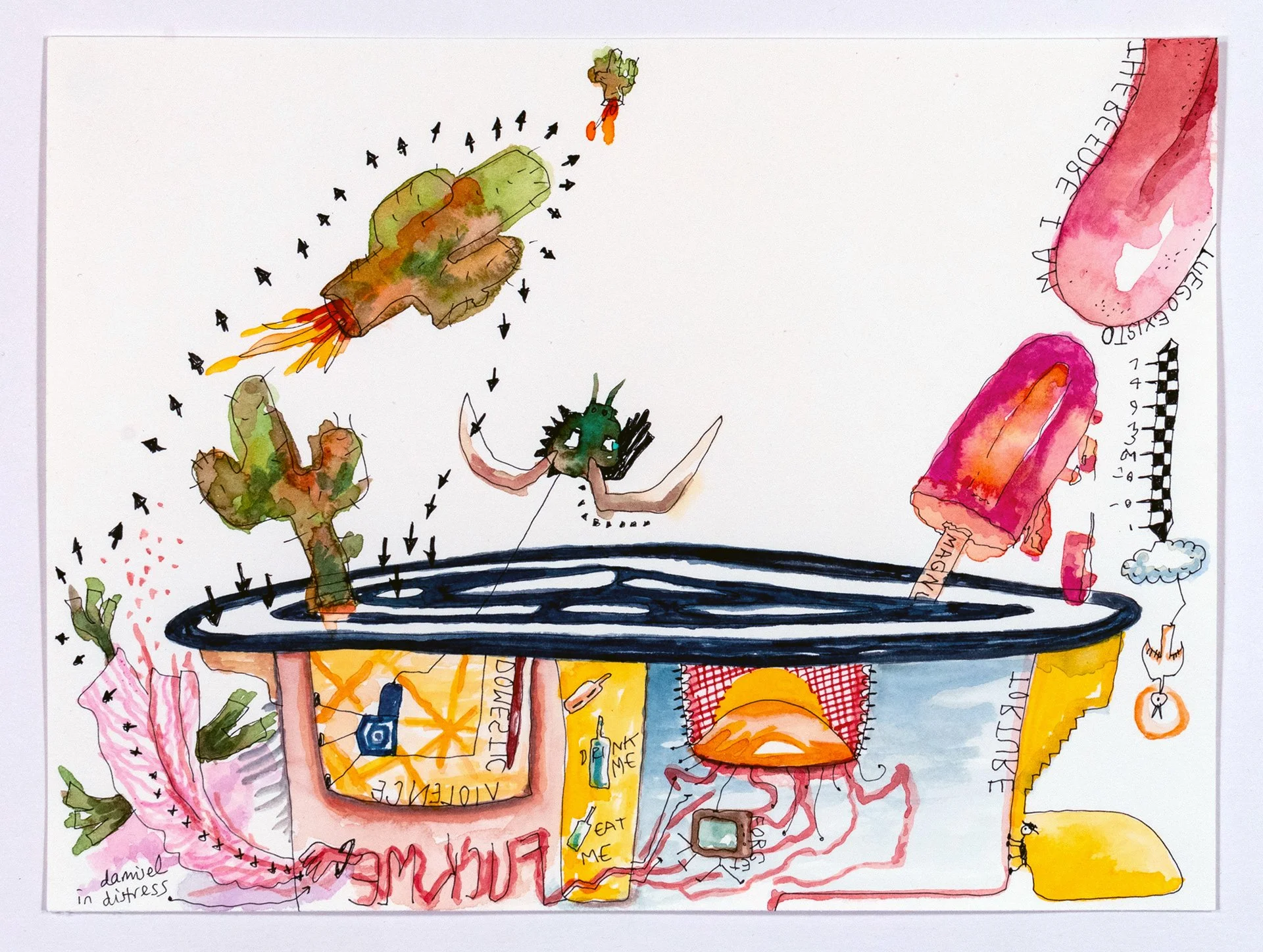 Rotulador de tinta de archivo y acuarela sobre papel libre de ácido